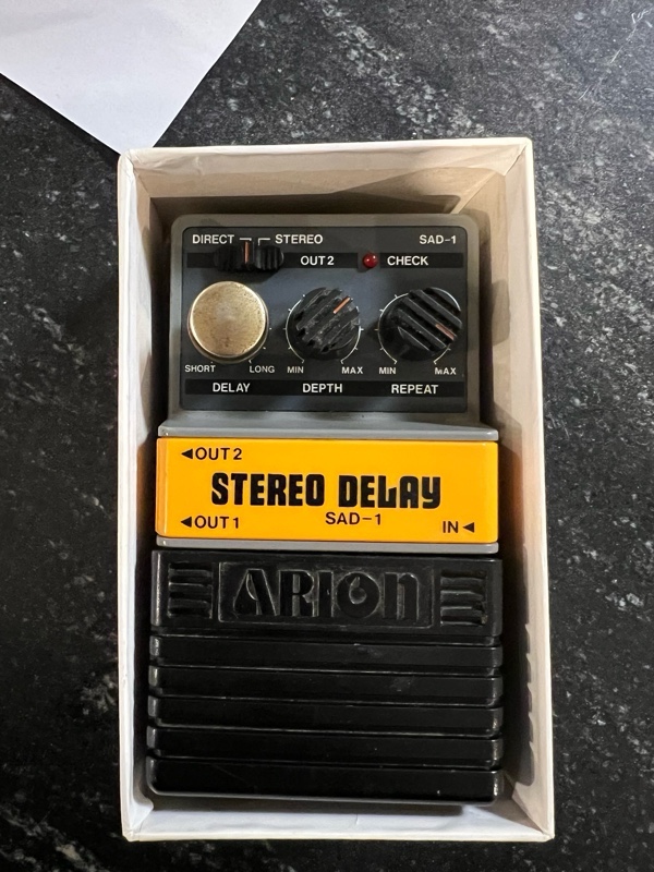 Home / Gear / Amps and Effects / Arion Stereo Delay SAD-1 Arion Stereo Delay SAD-1$80.00 . 1 in stock Arion Stereo Delay SAD-1 quantity Add to cart SKU: 4c42f65b Category: Amps and Effects Related products EHX Eddy analog vibrato and chorus0 out of 5 $90.00 Read more Boss GX-700 Effects Processor0 out of 5 $165.00 Add to cart MXR Distortion + 19780 out of 5 $200.00 Add to cart HAZ MU-TRON III +0 out of 5 $350.00 Add to cart